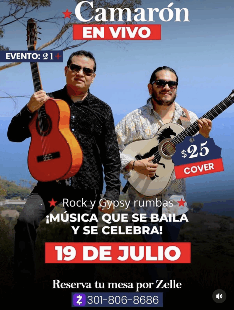 Duende Camaron is back at Chicano’s for two sets in a night that will be full of music and merriment. Come to hear me play percussion with the group as we play the night away!